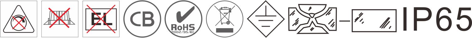 • The external flexible cable or cord of this luminaire can not be replaced; if the cord is damaged, the luminaire shall be destroyed.